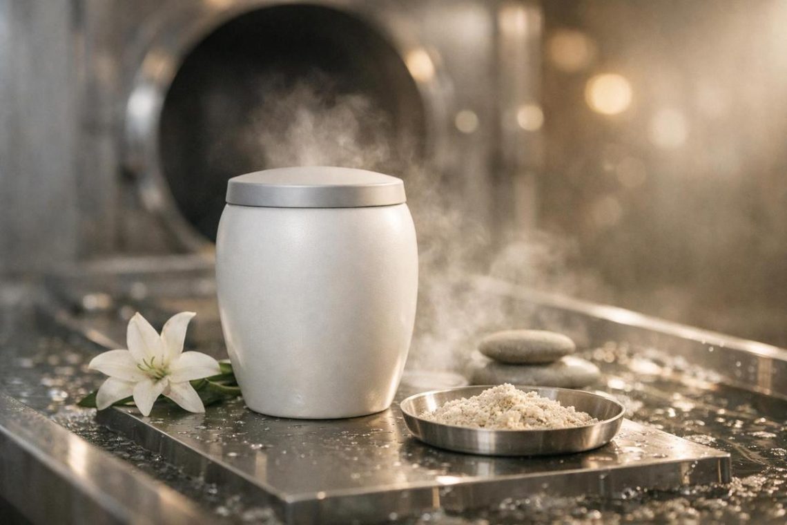 Une fois le traitement terminé, les ossements issus de l’aquamation sont séchés puis réduits en poudre fine, exactement comme après une crémation traditionnelle. Cette poudre osseuse blanche est ensuite placée dans une urne funéraire et remise aux proches.